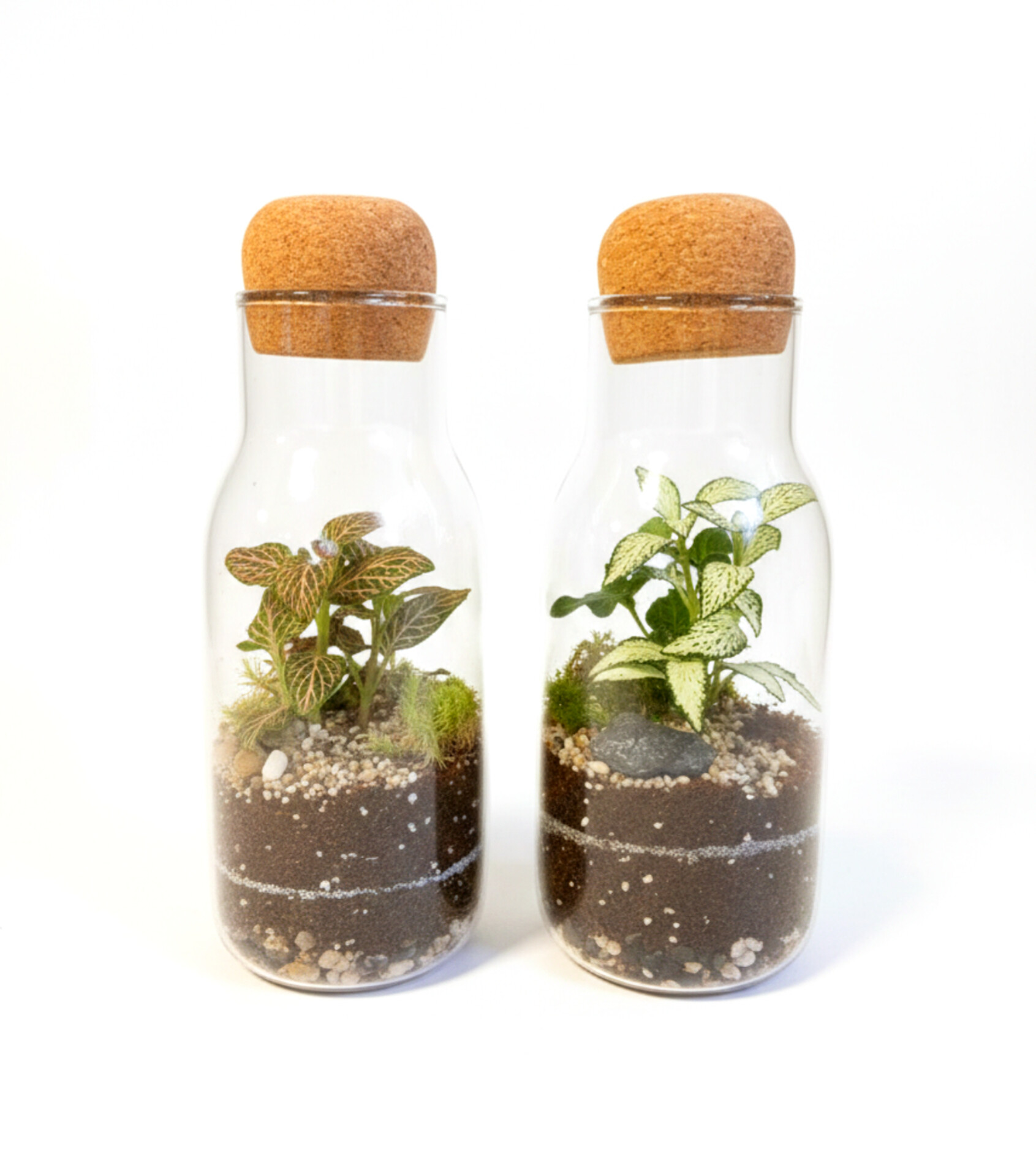 Terarij u boci koji ne treba puno prostora,a zbog pastelnih boja biljaka u vaš će dom unijeti malo šarenila.
